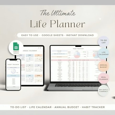 β¨ 10-in-1 Life Planner Google Sheets β Budget, Calendar 2025, Habit Tracker & To-Do List