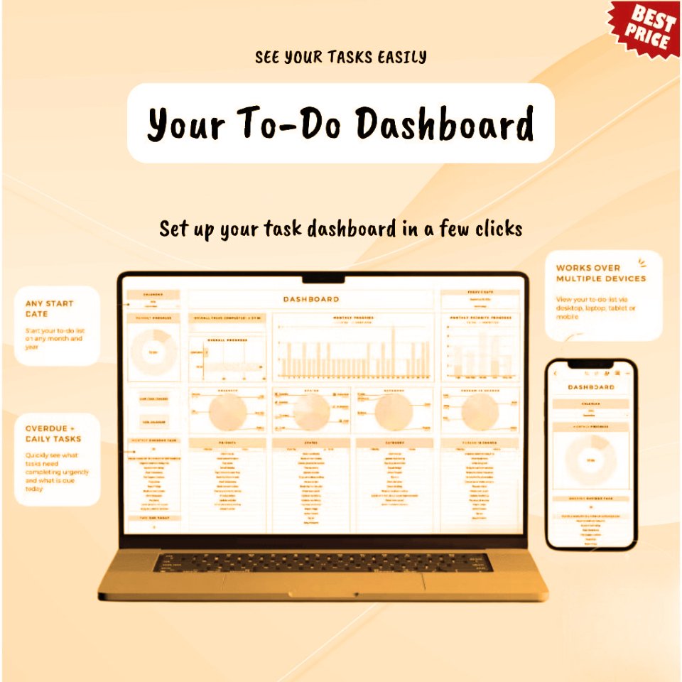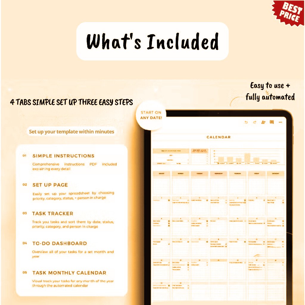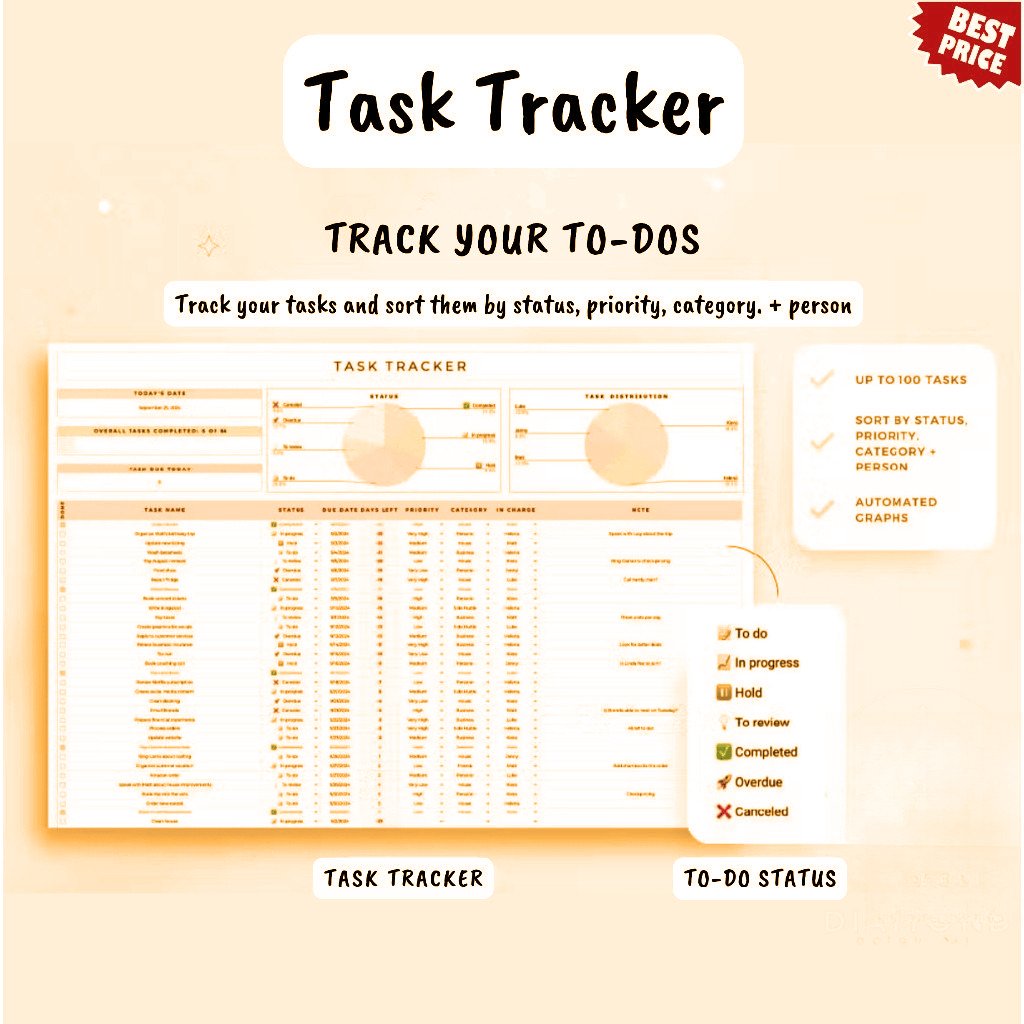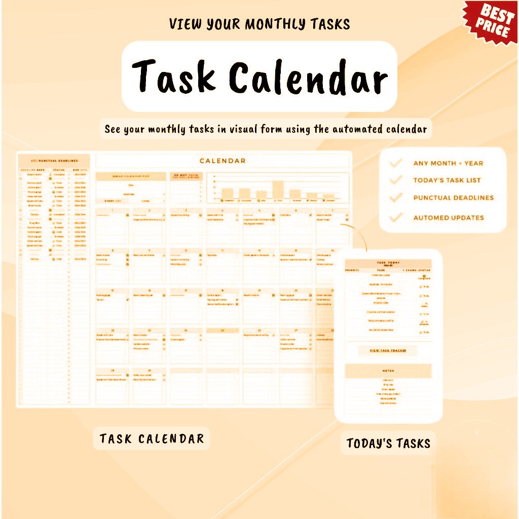 Track up to 100 tasks and sort them by priority, status, date, and category. The smart task dashboard and calendar update automatically, making this spreadsheet practical and easy to use. Use this template repeatedly by simply duplicating the tabs. Start building your sense of accountability today!