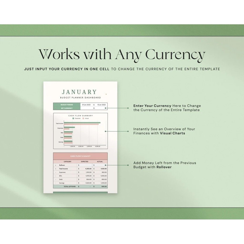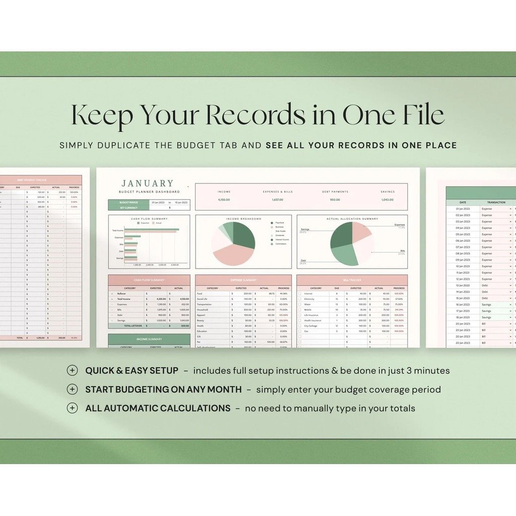 - One spreadsheet for multiple budget periods – simply duplicate the Budget tab