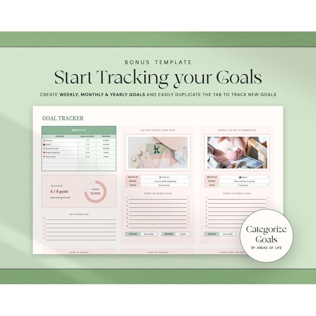 - BONUS TEMPLATE: Goal Tracker – track your weekly, monthly, and yearly goals