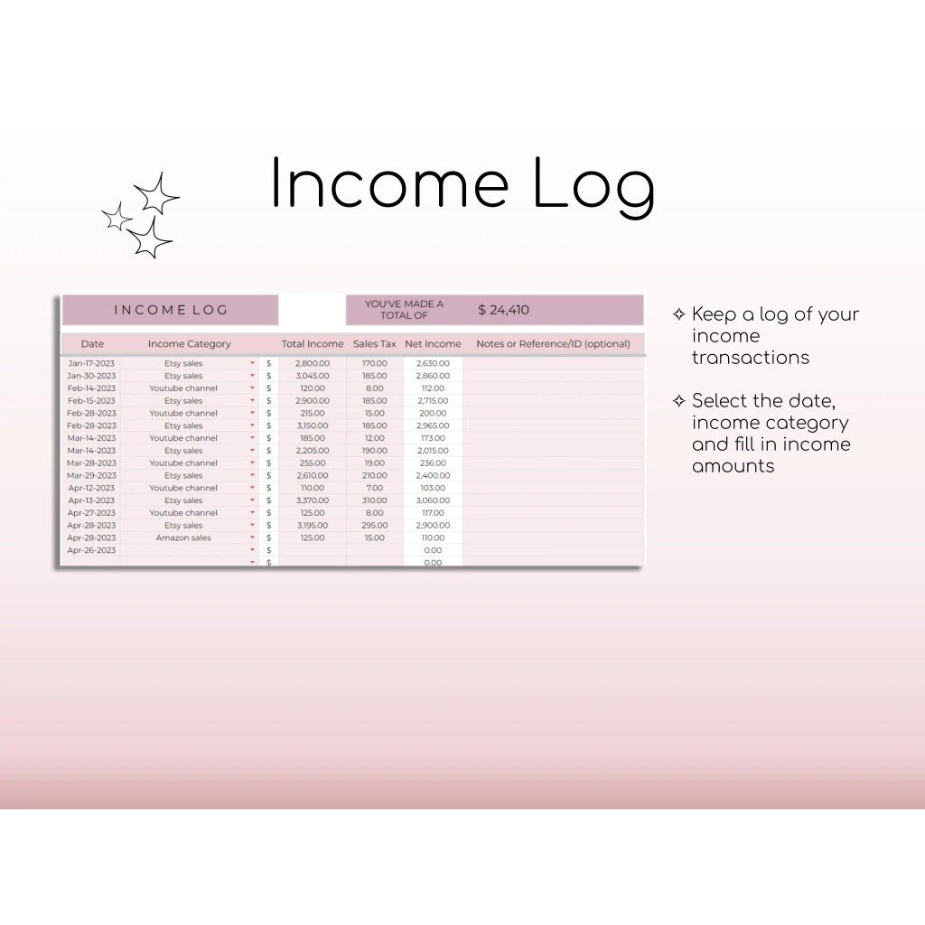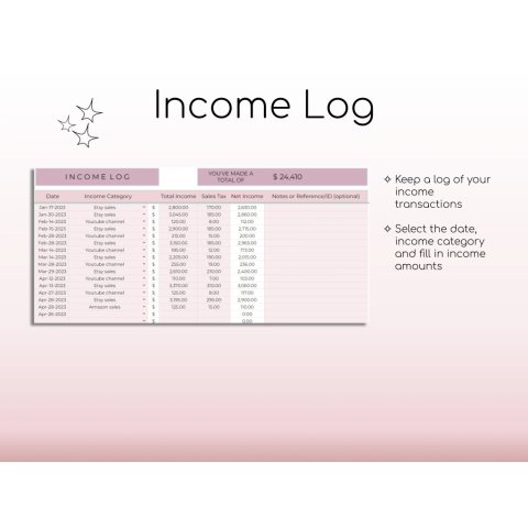 Income Tracker: Record all your revenue sources in one place.