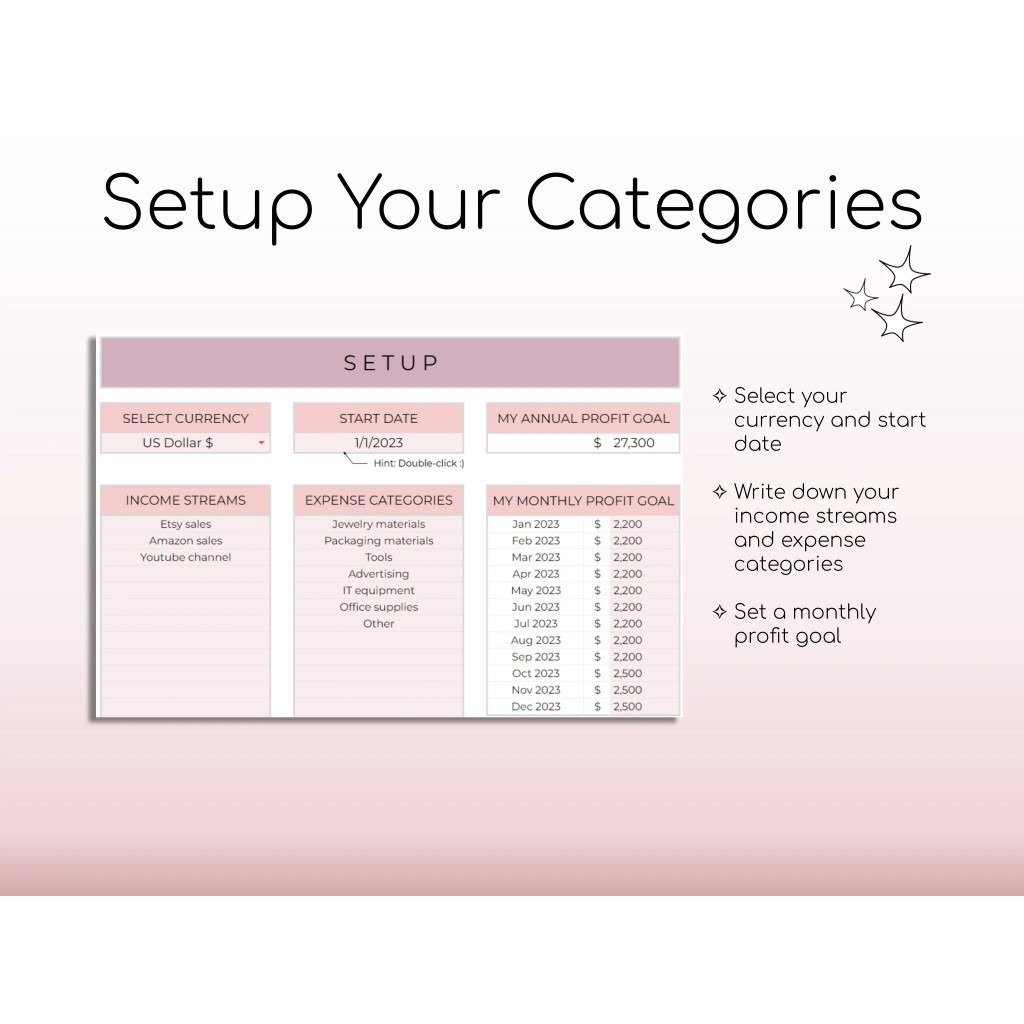 Fully Customizable Categories: Edit income and expense categories to fit your business needs.