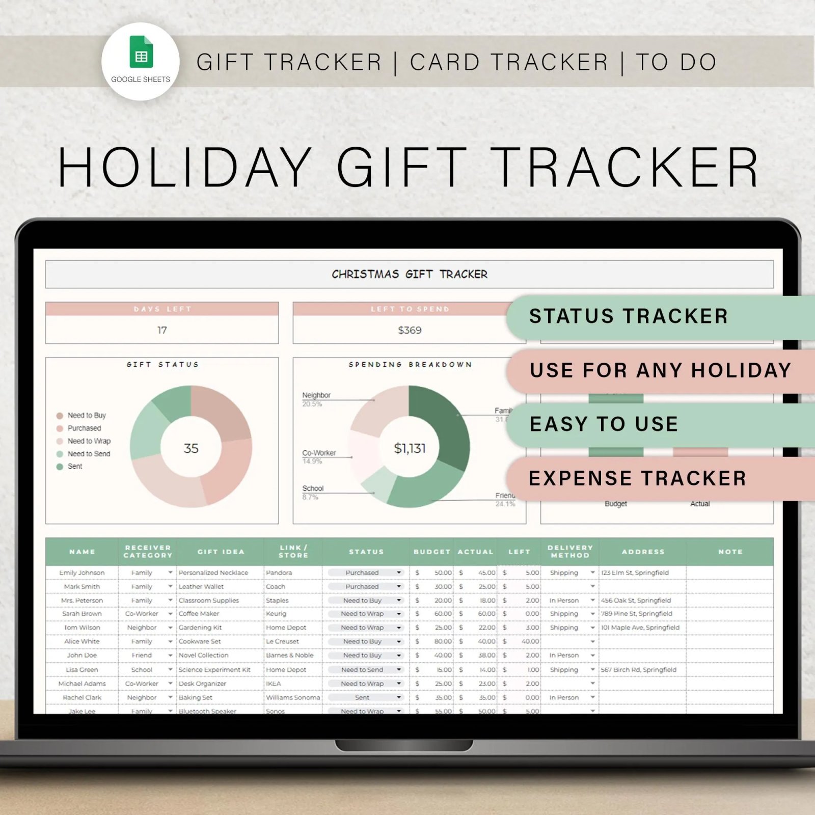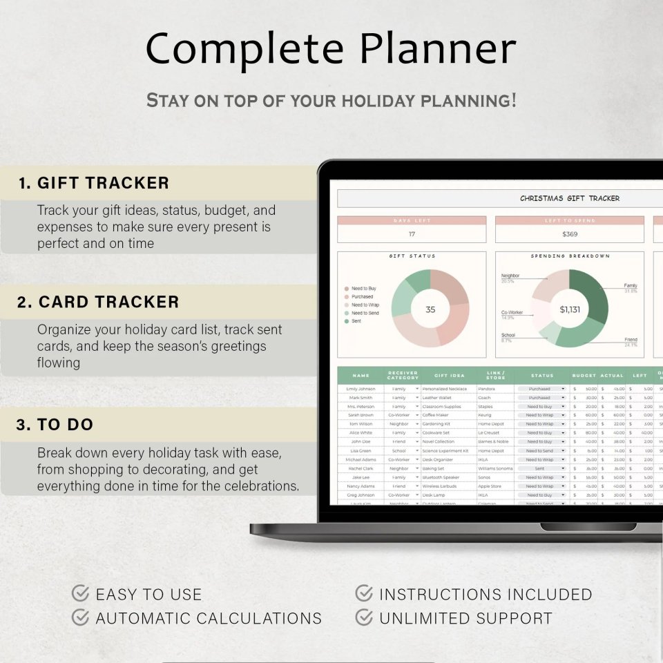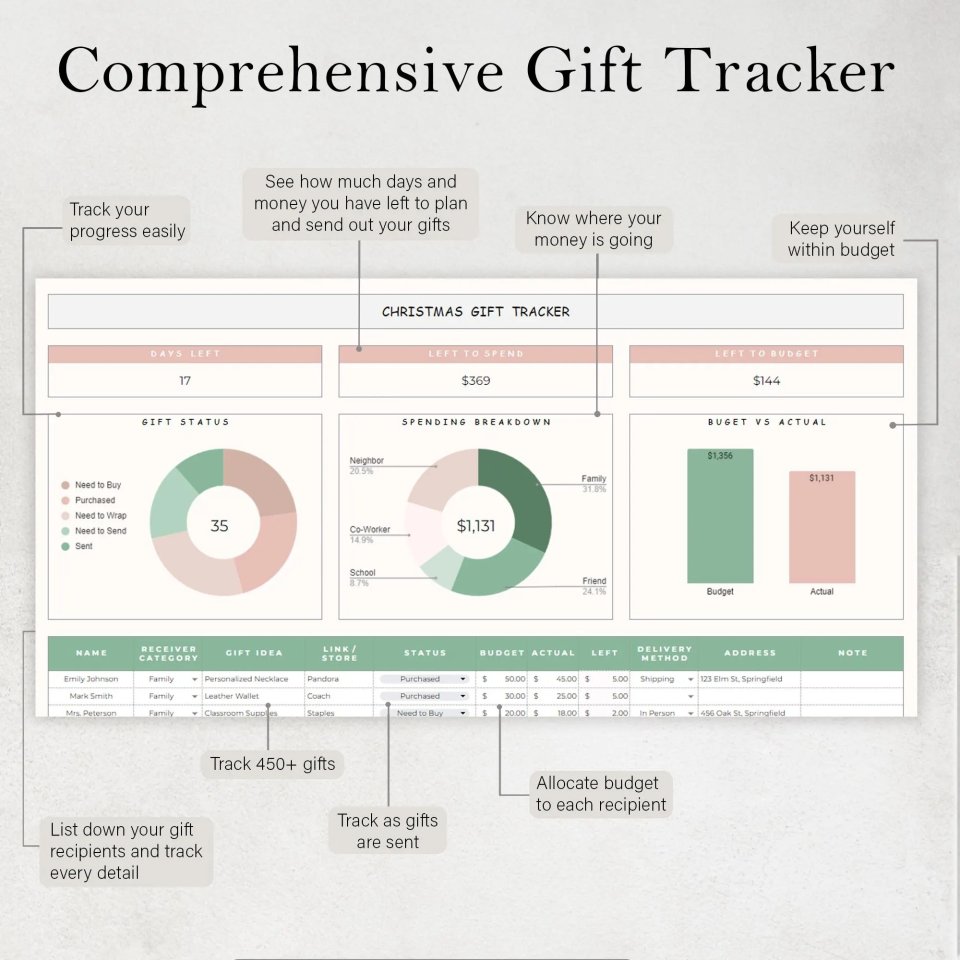 Christmas Gift Tracker Spreadsheet – Google Sheets Holiday Gift Planner