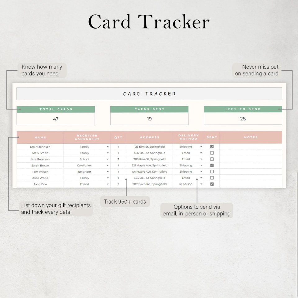 📬 Holiday Cards Tracker Included