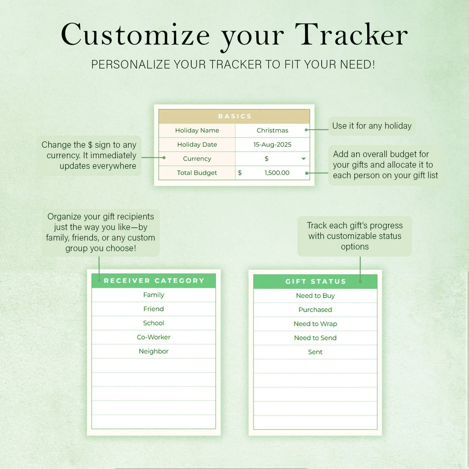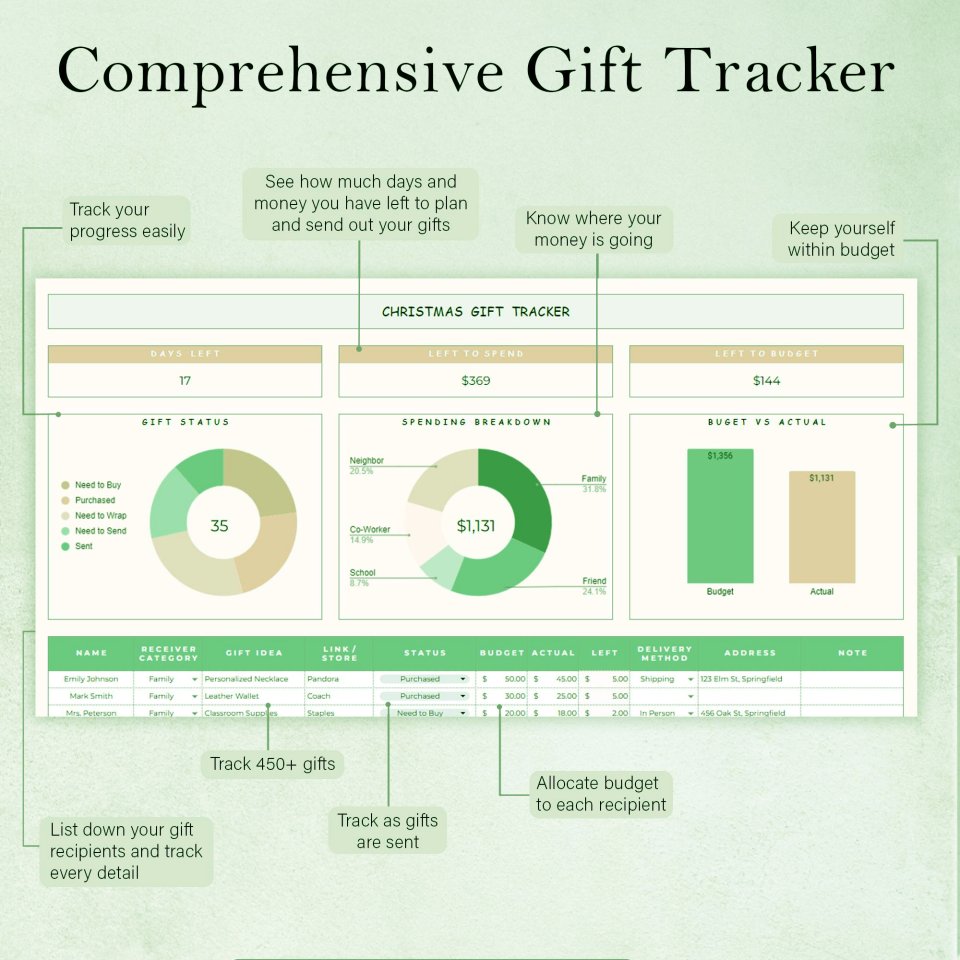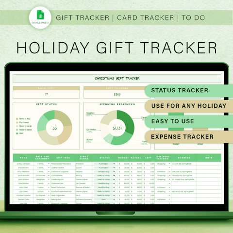 Holiday Gift Tracker Google Sheets | Christmas Gift Planner | Budget & Expense Tracker | Digital Gift List Template ES13
