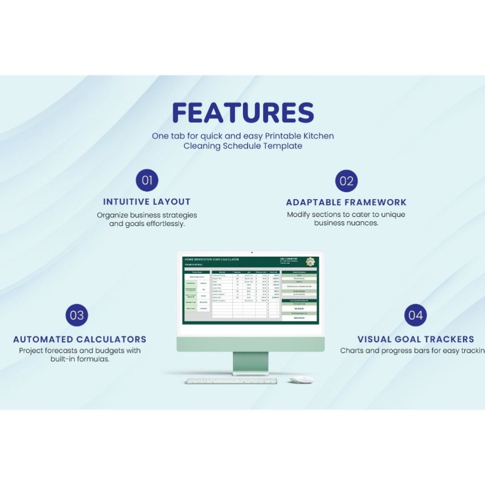 With automatic formulas, categorized cost sections, and a clean dashboard overview, you’ll get a clear picture of your renovation budget and spending—helping you avoid overspending and make better financial decisions.