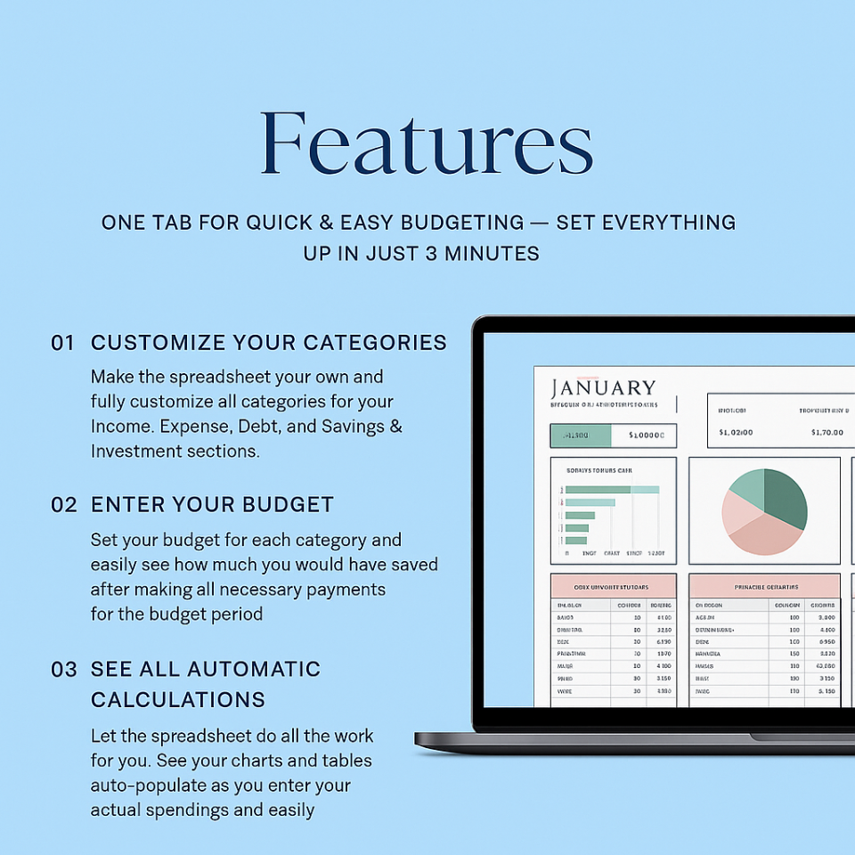 Start being more mindful with your spending and begin your personal finance journey with this Simple Budget Spreadsheet. Itβs designed to cover only what you actually need β clean, easy to understand, and visually appealing.