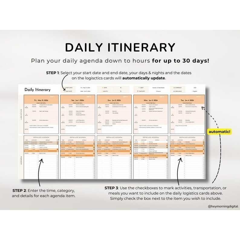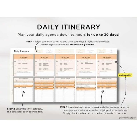 Perfect for solo travelers, families, or business trips, this planner helps you keep everything tidy, visual, and accessible anytime from your phone, tablet, or laptop.