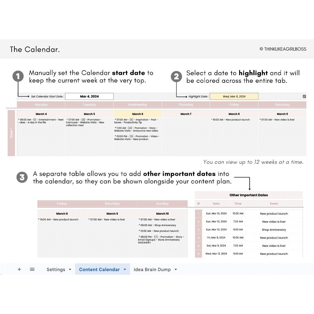 Itβs undated, so you can start using it anytime β plan your content by week, month, quarter, or year, and simply duplicate the tab whenever you need a fresh start. Youβre in full control!