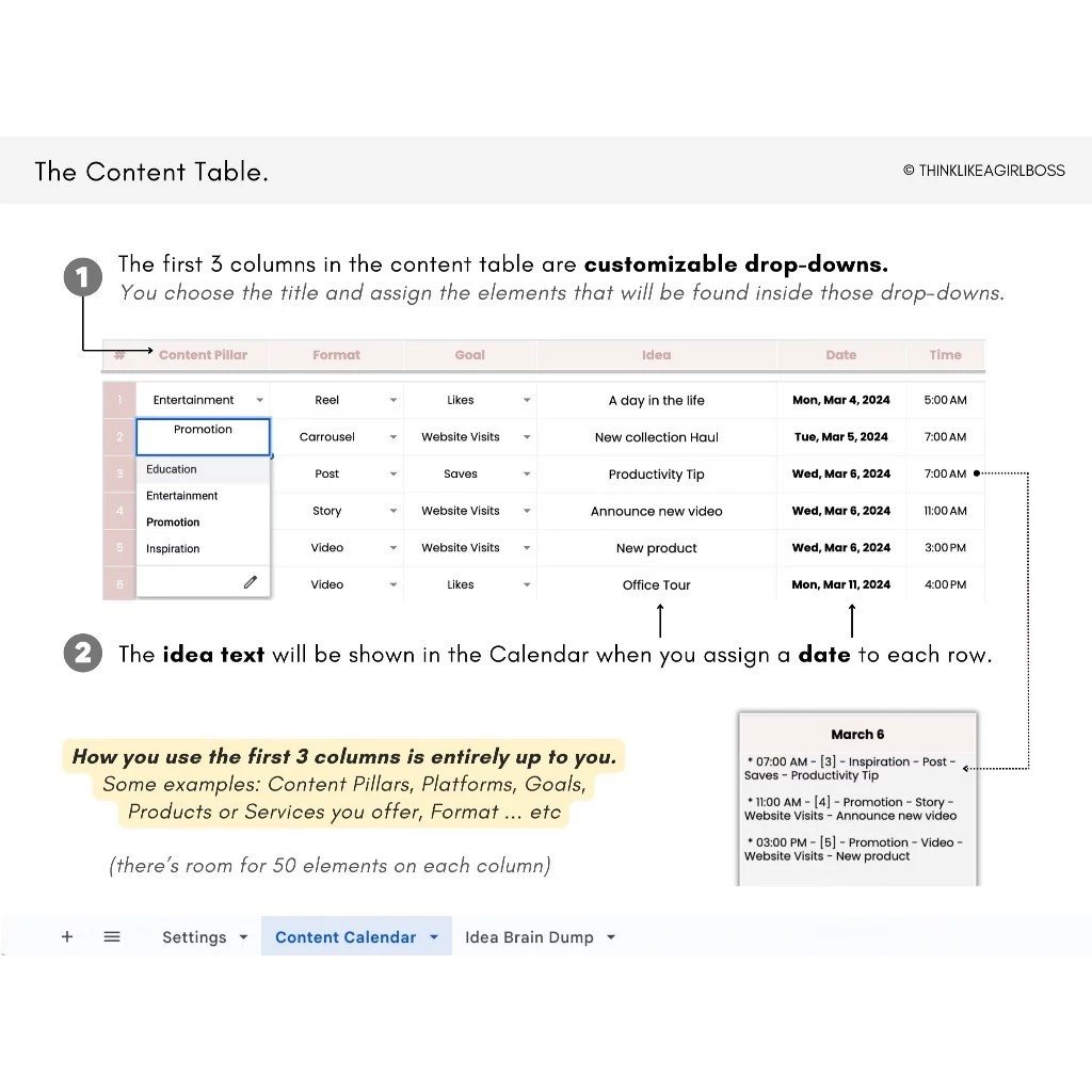 2 - Content Calendar: Add your content ideas and set dates so they can be displayed in Calendar View.