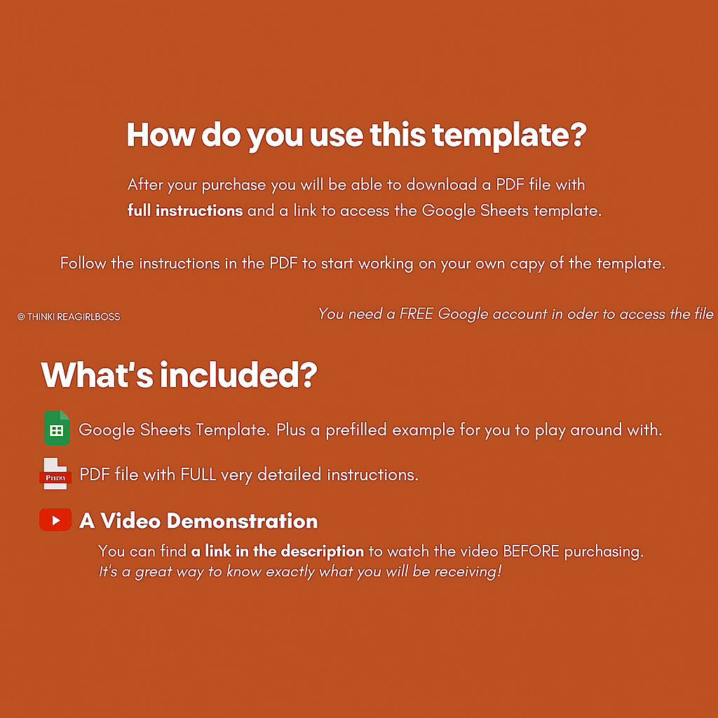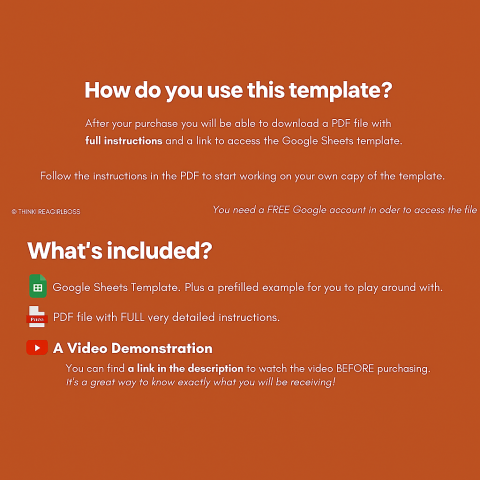 - Please note that this template is NOT compatible with Excel; it can ONLY be used with Google Sheets.