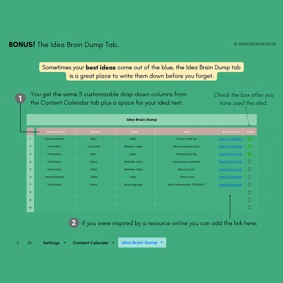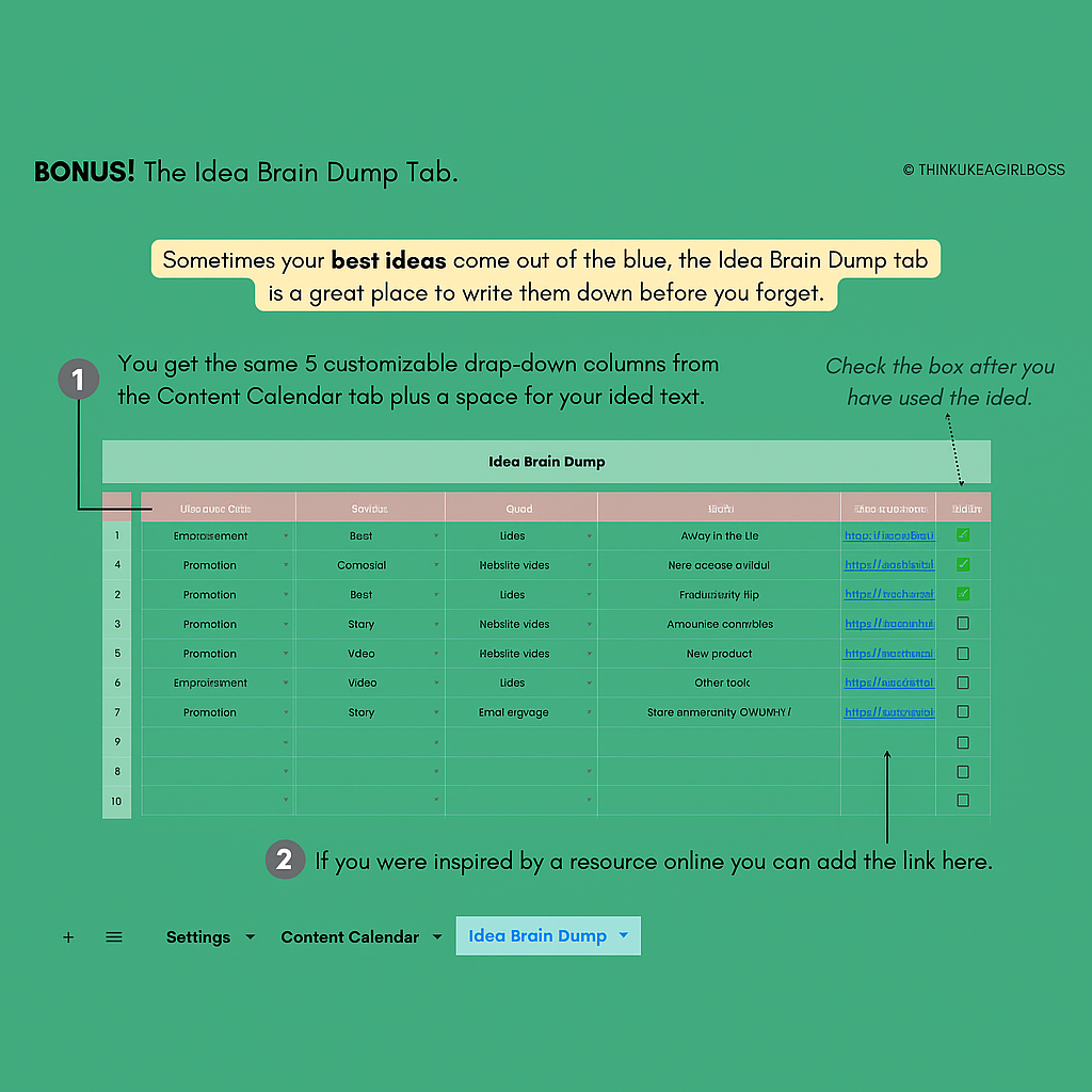 3 - Bonus! Idea Brain Dump: The best ideas come suddenly, so this is a great place to organize them for later use.