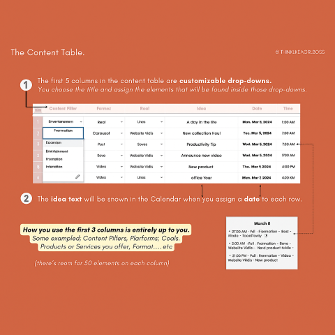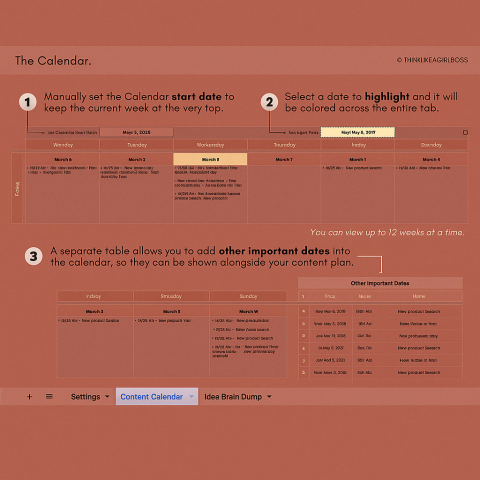 2 - Content Calendar: Add your content ideas and assign dates so they can be displayed in Calendar View.