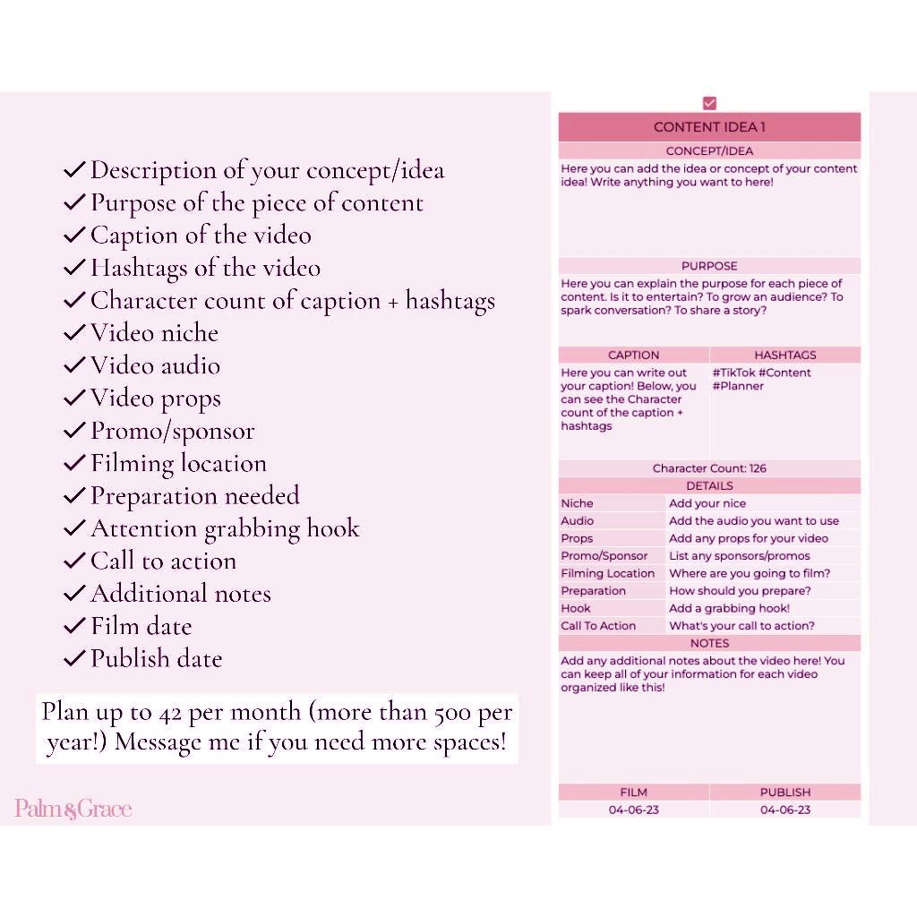 + Easily plan content ideas for TikTok videos so you can (hopefully) grow your platform!