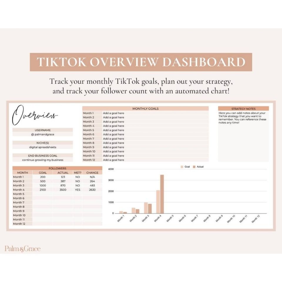 This TikTok Content Planner Google Sheets spreadsheet will help you easily plan social media content for TikTok. Use this social media content planner to map out your TikTok videos, jot down ideas, track your follower count, and more. This spreadsheet will help you see everything you need in one place, plus it's incredibly easy to use!