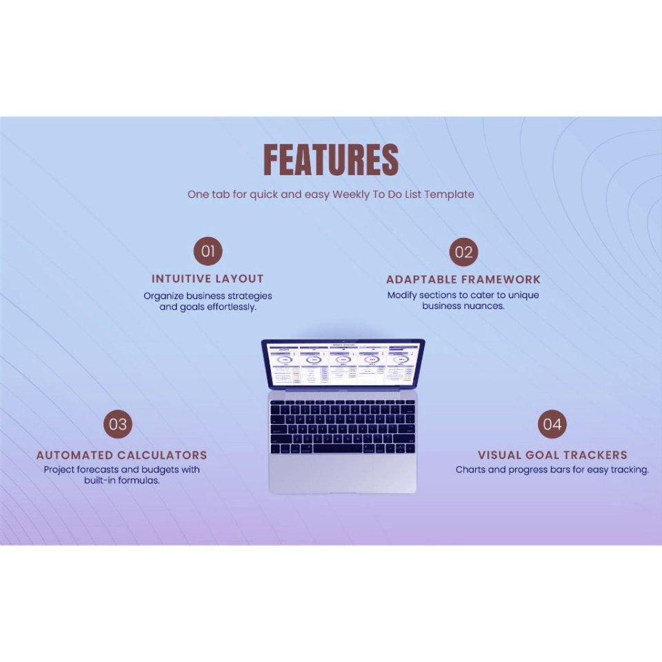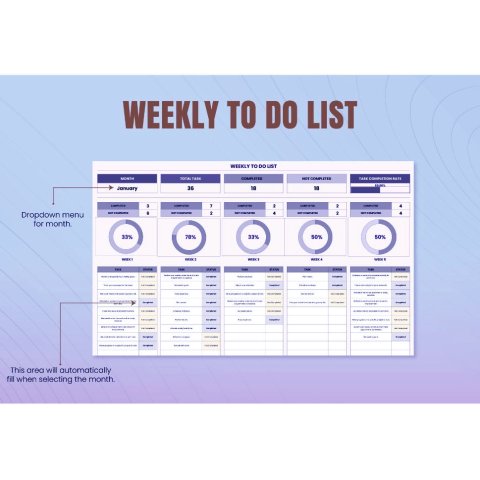 The Weekly To Do List Template is a practical solution for planning, organizing, and prioritizing your weekly tasks. This template can be customized to your needs, simplifying time management and increasing productivity. With a clean and easy-to-use design, you can create daily and weekly to-do lists for more structure and focus.